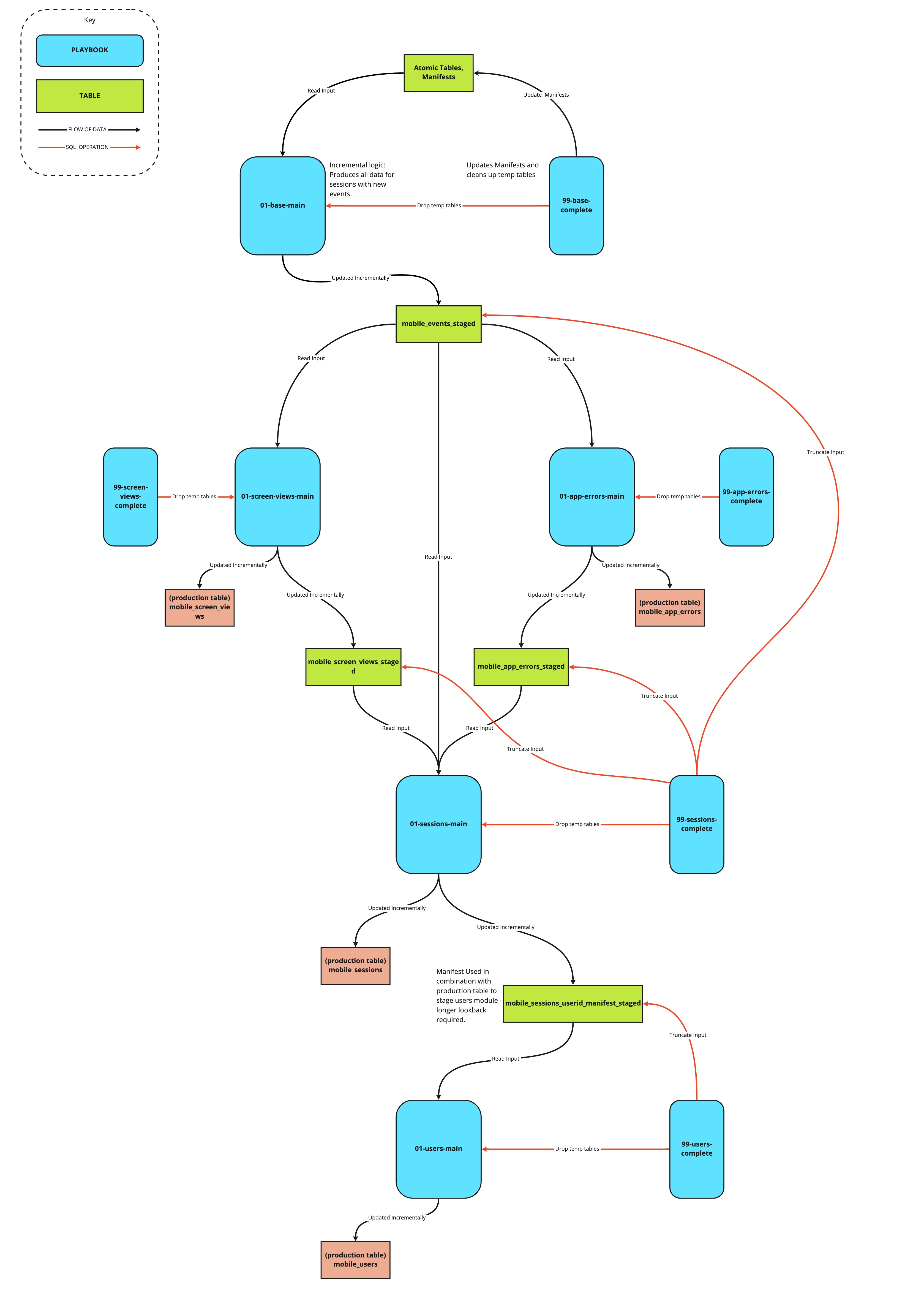The Snowplow mobile data model processes and aggregates data collected by the Snowplow iOS and Android mobile trackers into a set of derived tables - screen views, sessions and users - with each table generated by its respective module.