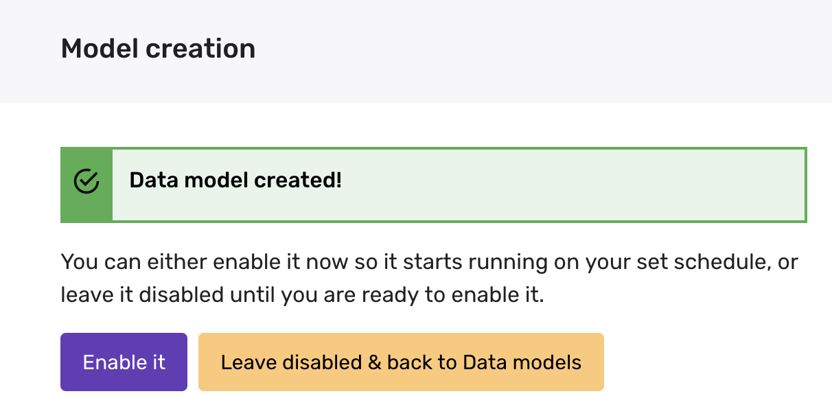 Once you are happy with the configuration, you can create the model. The model will be disabled until you enable it: