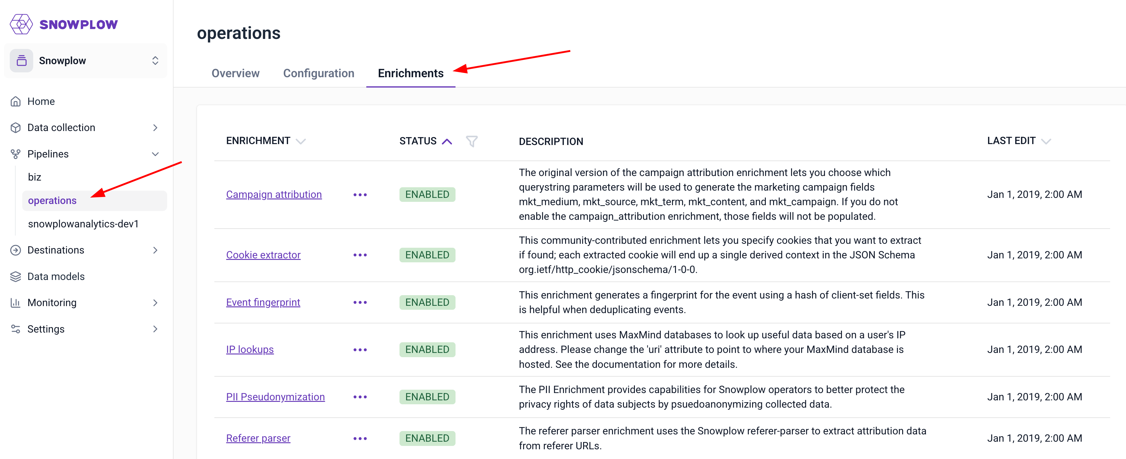 Snowplow Console enables you to manage the Enrichments that run on each of your pipelines.