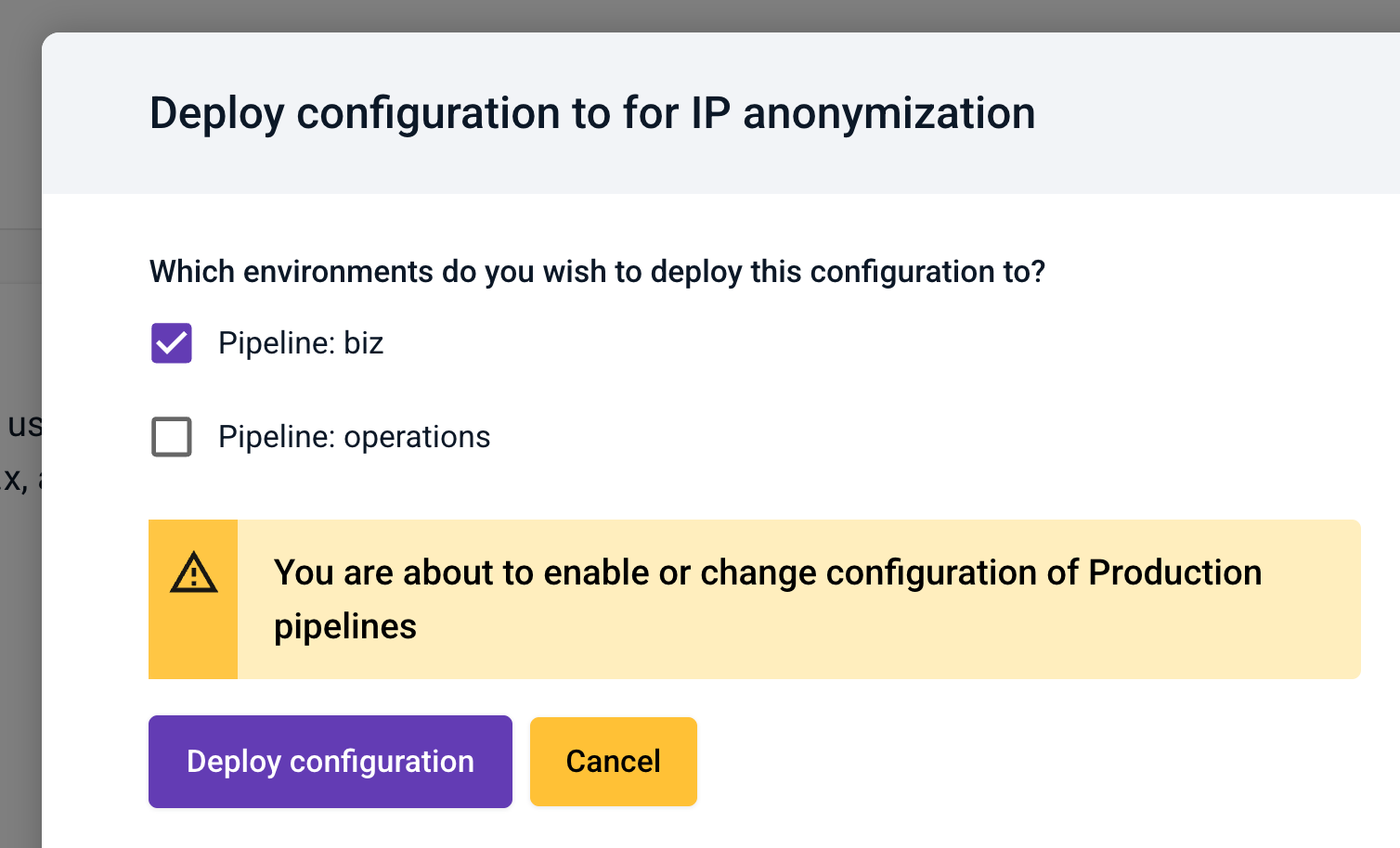 Once you are happy with your configuration, follow Deploying a configuration across environments to deploy the configuration to a pipeline.