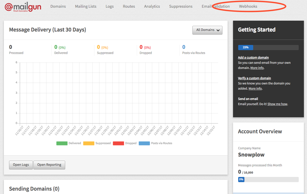 Integrating Mailgun's webhooks into Snowplow is a two-stage process: